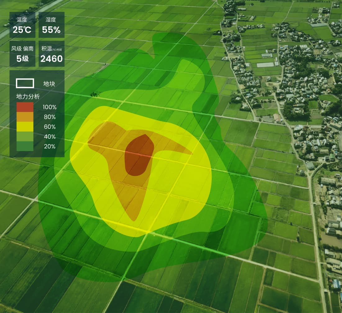 将气象、土壤、灾害多源数据融合AI技术,为农场提供全面的“体检报告”。分析土壤养分、积温积雨、极端天气等多种要素,助力种植综合决策。经验决策向数据驱动转型,构筑科学化农场管理新范式。
