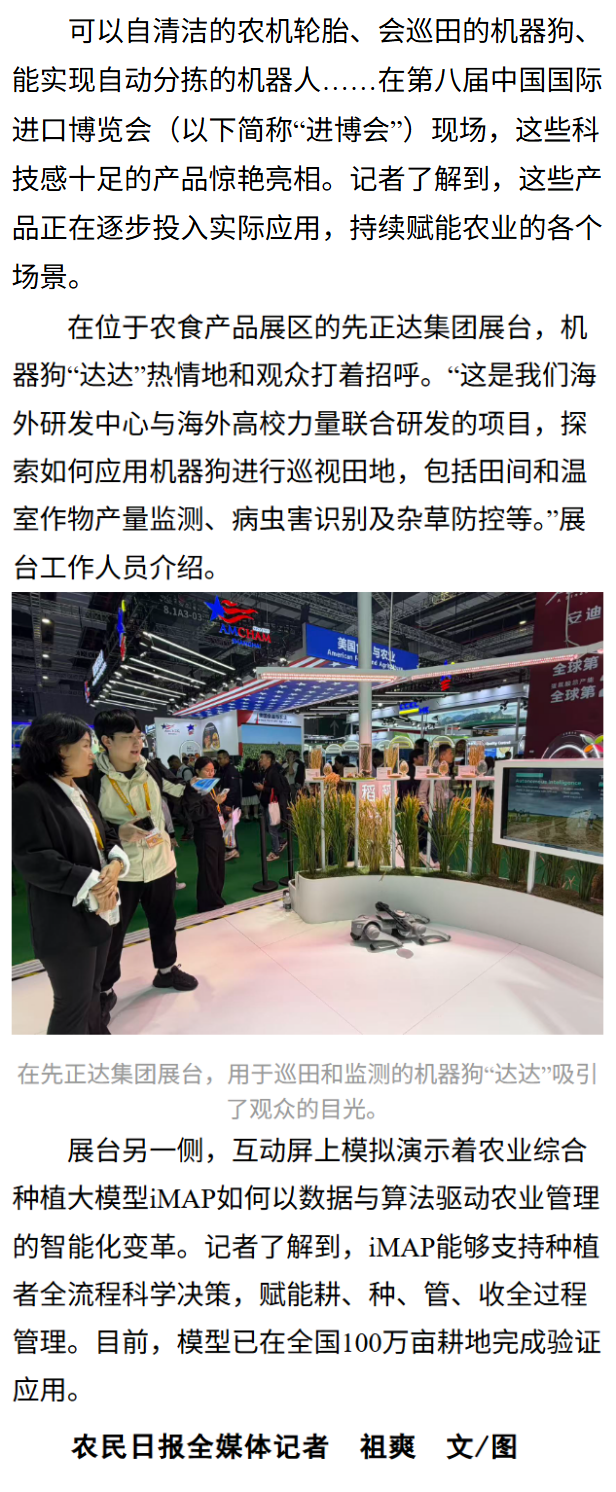 《AI技术成为农业创新新引擎,先正达进博会首秀全链条应用》